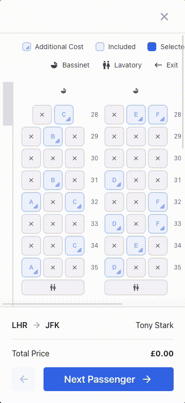 We've built this component so you can avoid spending weeks or months building your seat map and instead focus on providing a great travel experience for your customers.