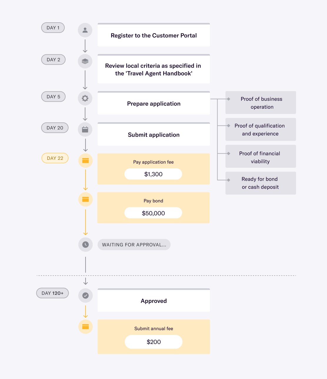 Typical approval flow to start selling flights:
