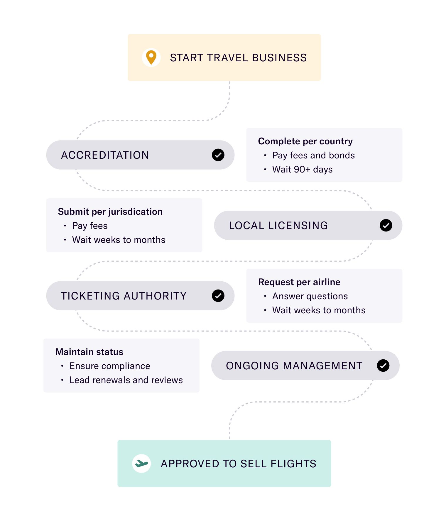 For new travel businesses, accreditation is one of the biggest hurdles: it is time-consuming, complex, and involves expensive fees and bonds. Any delays in the application process or mistakes in maintaining compliance can be the difference between success or failure of a new business.