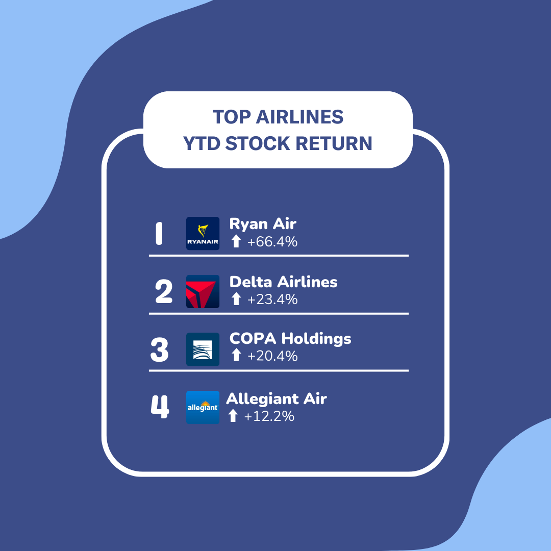 While Ryanair was the star of the show, other airlines also put on a commendable performance. Delta Airlines, COPA Holdings, and American low cost carrier Allegiant Air all posted impressive YTD returns, demonstrating that with the right strategies, the sky is indeed the limit. Surprisingly, the list includes two low-cost carriers, proving that despite many failures, it's possible to make a low-cost carrier profitable.