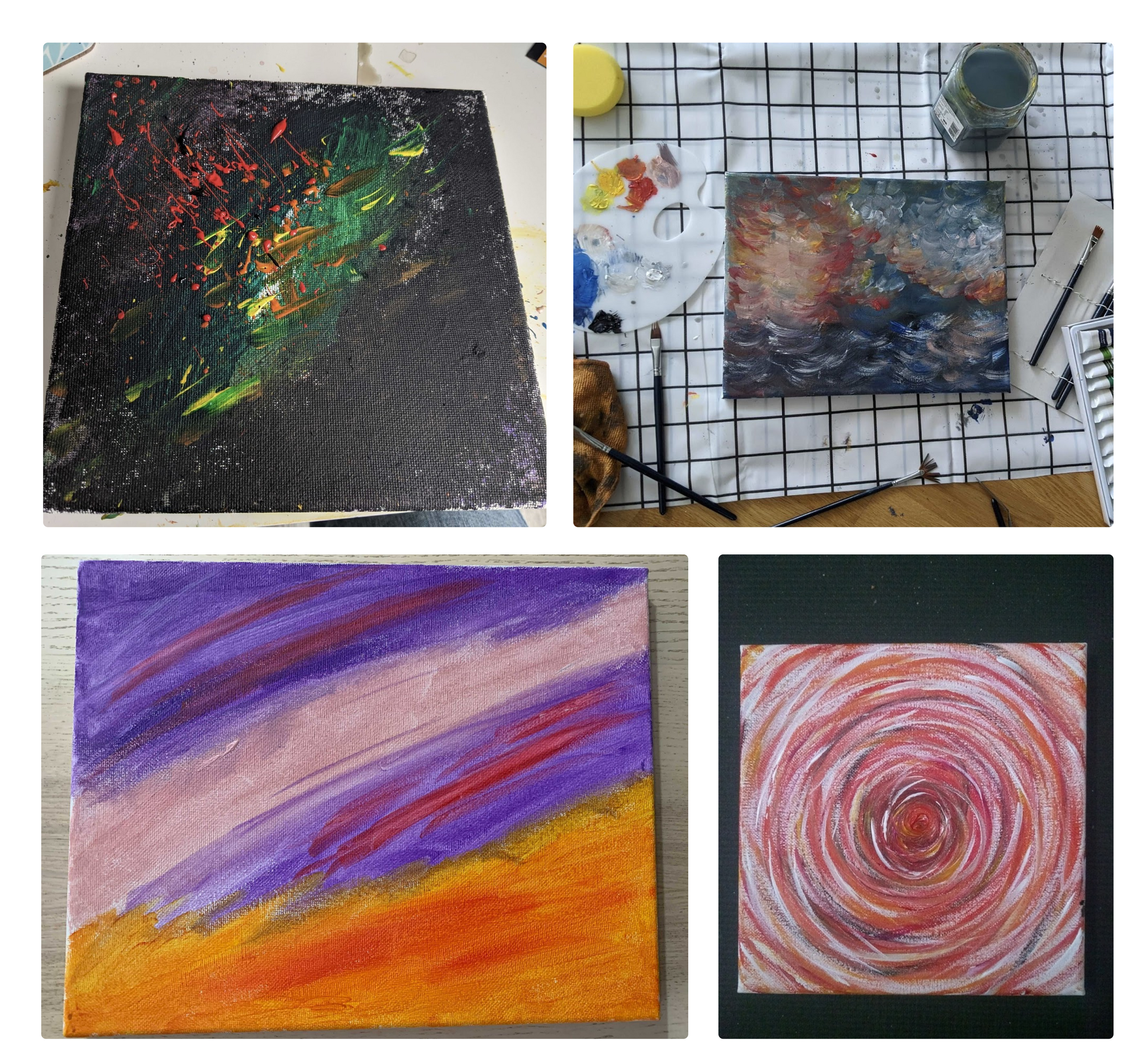 A few weeks back, we also had an acrylic painting class and challenge, where we had a kit mailed to us, we zoomed with an instructor who taught us the basics of abstract art. This challenge inspired me to start painting in my free time, and it’s really been the best hobby I’ve picked up in… well forever.